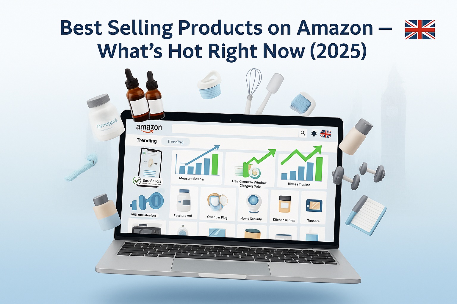 Finding the best selling products in the UK is essential for building a profitable ecommerce business. Before choosing items, sellers must set up a strong Amazon or dropshipping foundation with optimized accounts and proper store setup. In 2025, top-selling categories include Home & Kitchen essentials, Beauty & Personal Care, Health & Fitness items, Pet Supplies, and Consumer Electronics. These niches show consistent demand and great profit potential. To choose winning products, focus on high demand, low competition, lightweight items, and strong margins. With the UK ecommerce market booming, new sellers can succeed through smart product research and the right selling model.